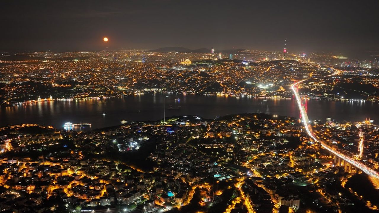 Dron ile çekilen görüntülerde 15 Temmuz Şehitler Köprüsü ve Çamlıca Camii ile birlikte oluşturduğu manzara izleyenleri adeta mest etti. Ay’ın Dünya’ya en yakın konumda olduğu gün gözlemlenen Süper Ay, normal dolunaydan yüzde 30 daha parlak ve yaklaşık yüzde 14 daha büyük görünüyor. Bu sayede ilginç manzaralar oluşabiliyor, Türkiye’nin farklı noktalarından çekilen süper ay fotoğrafları da vatandaşlar tarafından büyük beğeni ile karşılandı. İHA