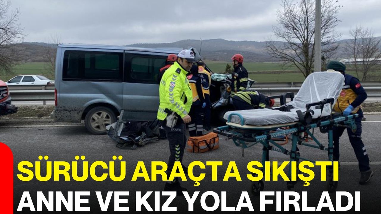 Sürücü Araçta Sıkıştı, Anne ve Kız Yola Fırladı