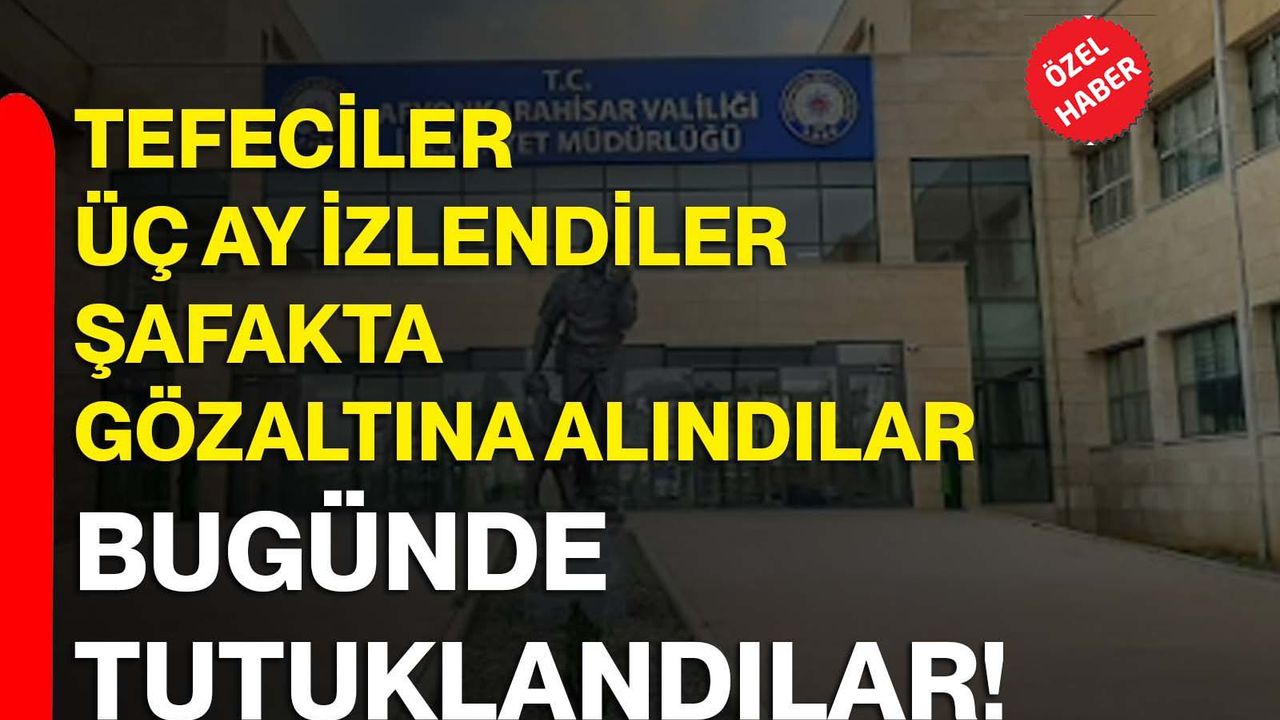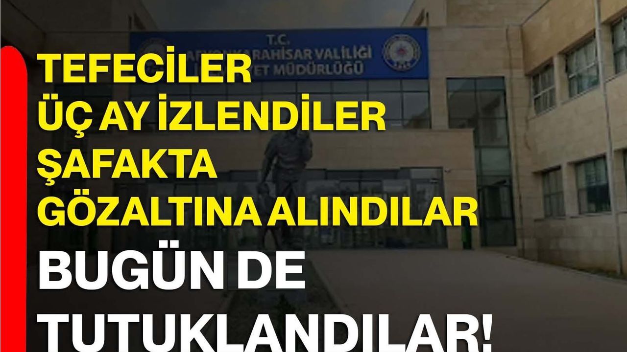 L. Oto sahibi Fatih G. sağlık sebebi nedeniyle serbest bırakılırken, G. Oto firması sahibi 1993 doğumlu İbrahim G. , O. Oto sahibi 1980 doğumlu Osman G. ve R. Oto sahibi 1987 doğumlu Mehmet G. tutuklandılar. Afyonkarahisar Emniyet Müdürlüğüne yakın kaynaklardan alınan bilgilere göre tefecilere yönelik operasyonların önümüzdeki süreçte daha da artırılarak devam ettirileceği belirtildi. Fatih G. ile Tekin E. Nin sağlık sebepleri nedeniyle serbest kaldıkları belirtildi. Fatih G. nin By pass ameliyatı olduğu, Tekin E.nin ise yoğun bakıma kaldırıldığı öğrenildi.