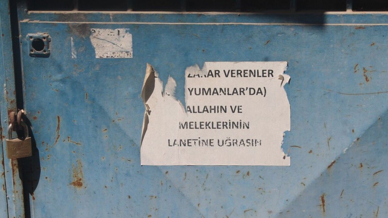 Odunpazarı ilçesi Deliklitaş Mahallesi Boyacılar sokaktaki bir evin kapısına asılan yazı görenleri düşündürüyor. Pencereleri çeşitli tahta parçalarıyla tamamen kapatıldığı ve kapısına kilit vurulduğu gözlemlenen müstakil evin uzun yıllardır kullanılmadığı tahmin ediliyor. Evin demir kapısının üzerine asılan bir yazı ise dikkat çekiyor. Yazının yazıldığı kâğıdın bir kısmının yırtıldığı görülürken, kalan kısmında “Bu eve zarar verenler ve buna göz yumanlar da Allah’ın ve meleklerinin lanetine uğrasın” ifadeleri yer alıyor. Yazıyı gören bazı vatandaşlar ise söz konusu evde daha önceki yıllarda yaşayanlarla ilgili bir problemin olabileceğini ifade ederek, kapıdaki yazının insanları korkutmak için yazılmış ihtimalini de dile getirdiler. İHA