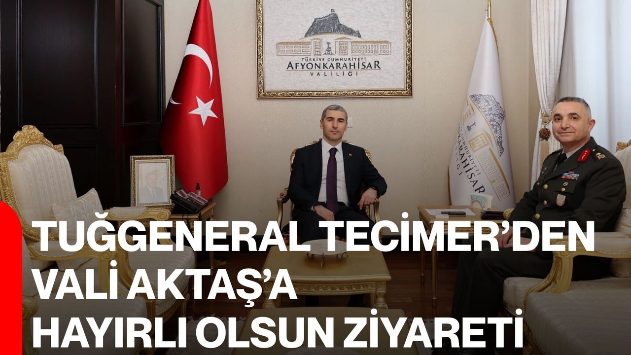İkmal ve Garnizon Komutanı Tuğgeneral Dr. Yalçın Tecimer, Afyonkarahisar Valisi Dr. Naci Aktaş’ı makamında ziyaret ederek yeni görevinde başarı temennilerini iletti. Gerçekleştirilen ziyarette karşılıklı iyi dilekler paylaşılırken, kentte yürütülen çalışmalar üzerine değerlendirmelerde bulunuldu.