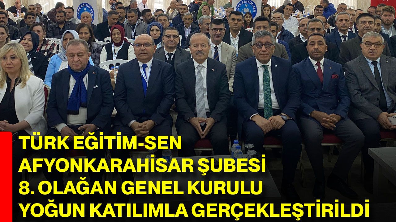 Türk Eğitim-Sen Afyonkarahisar Şubesi’nin 8. Olağan Genel Kurulu, yoğun katılımla gerçekleştirildi. Genel kurulda Türk Eğitim-Sen Genel Başkan Yardımcısı Haydar Urfalı, Türkiye Kamu-Sen Genel Başkan Yardımcısı Mehmet Emin, Milliyetçi Hareket Partisi İl ve Merkez İlçe Yönetimleri, Şuhut Belediye Başkanı Muhittin Özaşkın, Gömü Belediye Başkanı Ramazan Eryıldız, Ülkü Ocakları Afyonkarahisar İl Başkanı Mesut Çetinkaya, Türk-Alp İl Başkanı Abdullah Güngör ve çok sayıda davetli hazır bulundu. Programda sendika temsilcileri, yerel yöneticiler, eğitim camiasının temsilcileri ve MHP önceki dönem milletvekili adayı Yücel Genç de yer aldı.