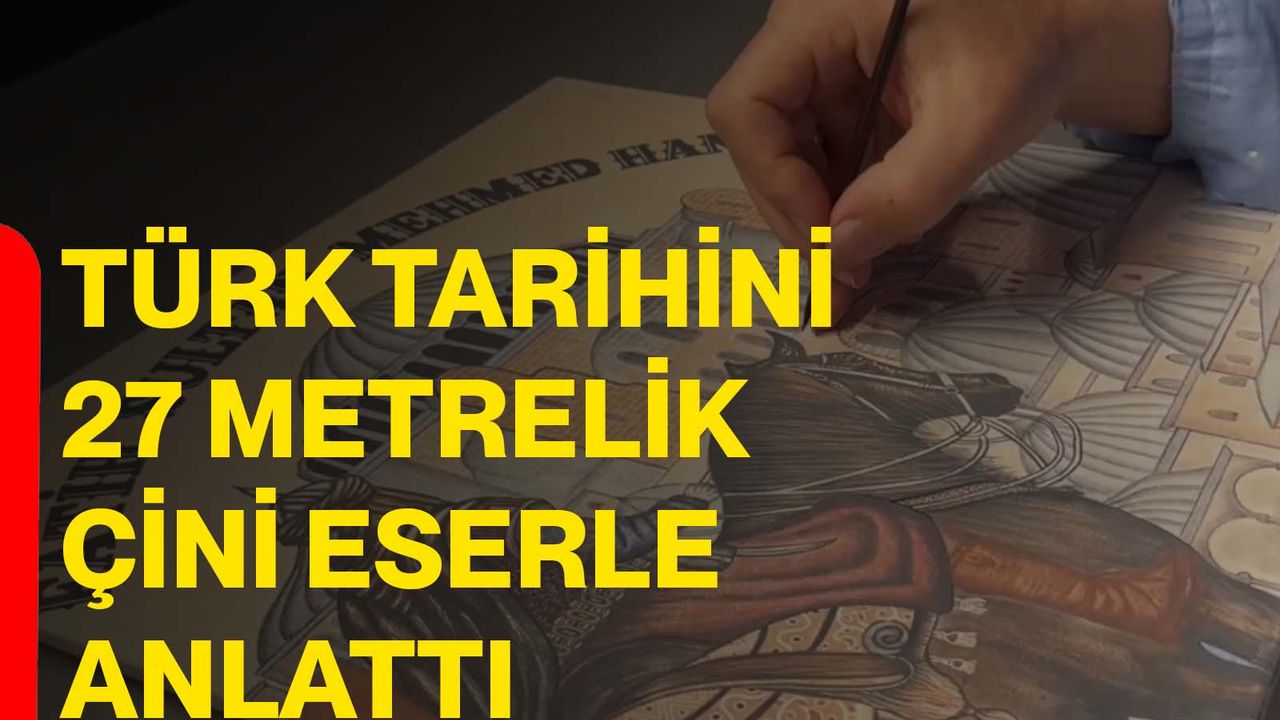 "İlk önce Türk vardı" ismini verdiği son çini eserin 230 parçadan oluştuğunu anlatan Çetinkaya, şöyle konuştu: "Çini çamurundan çalışmama göre özel hazırladığım bisküvilere çizimleri ve boyamaları yaptıktan sonra yine özel hazırladığım kristalize mat sırlama yöntemiyle sırlama işlemini gerçekleştirdim. Yaklaşık 900 derecede fırında pişirerek bu eseri elde ettim."