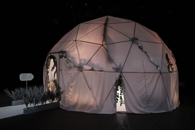 Tamamen hareket, dans ve ışık oyunları üzerine kurulan “Parla” adlı oyunda diyalog bulunmuyor. Oyunun tek repliği “parla” olurken, ışık efektleri ve video mapping teknolojisi sahnenin önemli unsurları arasında yer alıyor. Yaklaşık 25 dakika süren oyunda birebir iletişim ve etkileşim ön planda tutulurken, sahnenin yapısı nedeniyle her gösteride yalnızca 10 bebek ve 10 ebeveyn kabul ediliyor.