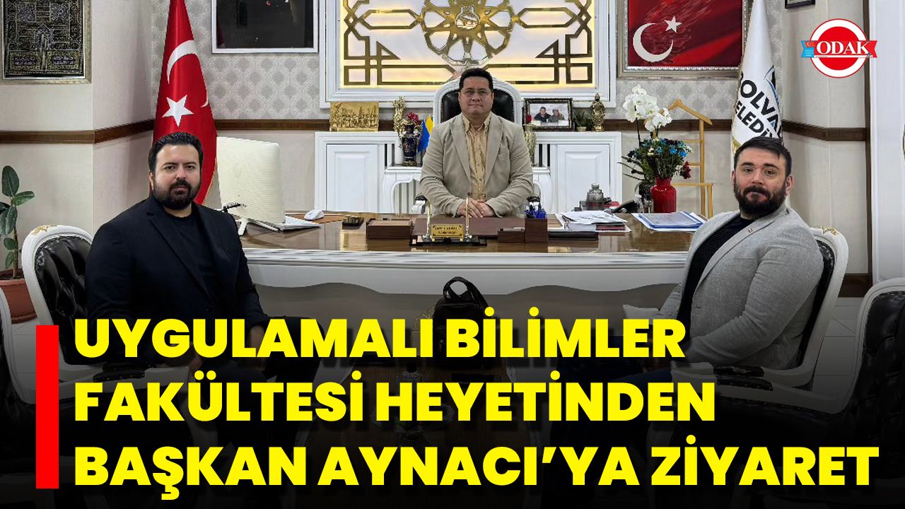 Bolvadin Belediye Başkanı Derviş Aynacı, Uygulamalı Bilimler Fakültesi Dekan Yardımcısı Dr. Fatih Bıyıklı ve Öğr. Gör. Ömer Orbay Çetin’i makamında kabul etti. Gerçekleştirilen ziyarette ilçedeki yükseköğretim faaliyetleri, öğrencilerin sosyal yaşama katılımı ve belediye ile fakülte arasında yürütülebilecek ortak projeler üzerine fikir alışverişinde bulunuldu.