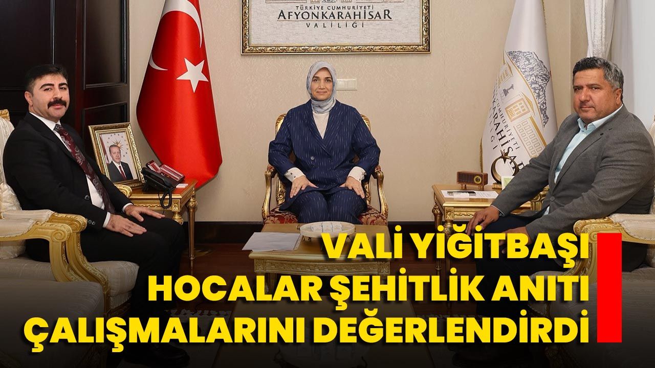 Afyonkarahisar Valisi Doç. Dr. Kübra Güran Yiğitbaşı, Hocalar Kaymakamı Yunus Emre Altunkaynak ve Hocalar Belediye Başkanı Ali Arslan’ı makamında kabul etti. Gerçekleşen ziyarette, Valiliğin destekleriyle yapımı devam eden Hocalar Şehitlik Anıtı projesine ilişkin yürütülen çalışmalar ayrıntılı biçimde değerlendirildi.