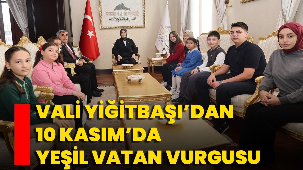 Afyonkarahisar Valisi Doç. Dr. Kübra Güran Yiğitbaşı, Ulu Önder Gazi Mustafa Kemal Atatürk’ün ebediyete irtihalinin 87. yıl dönümü dolayısıyla İl Milli Eğitim Müdürlüğü tarafından düzenlenen “Atatürk’ün Gözünden Yeşil Vatanımız” temalı yarışmalarda dereceye giren öğrencileri Valilik makamında kabul etti.