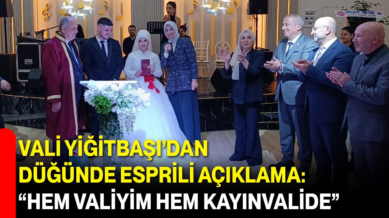 Törende konuşan Vali Yiğitbaşı, gelinin deprem zamanı Hatay’dan geldiğini belirterek gelinin ailesinin törene geç kaldığını, bu nedenle hem bir vali hem de esprili bir dille “kayınvalide” olarak burada bulunduğunu ifade etti.