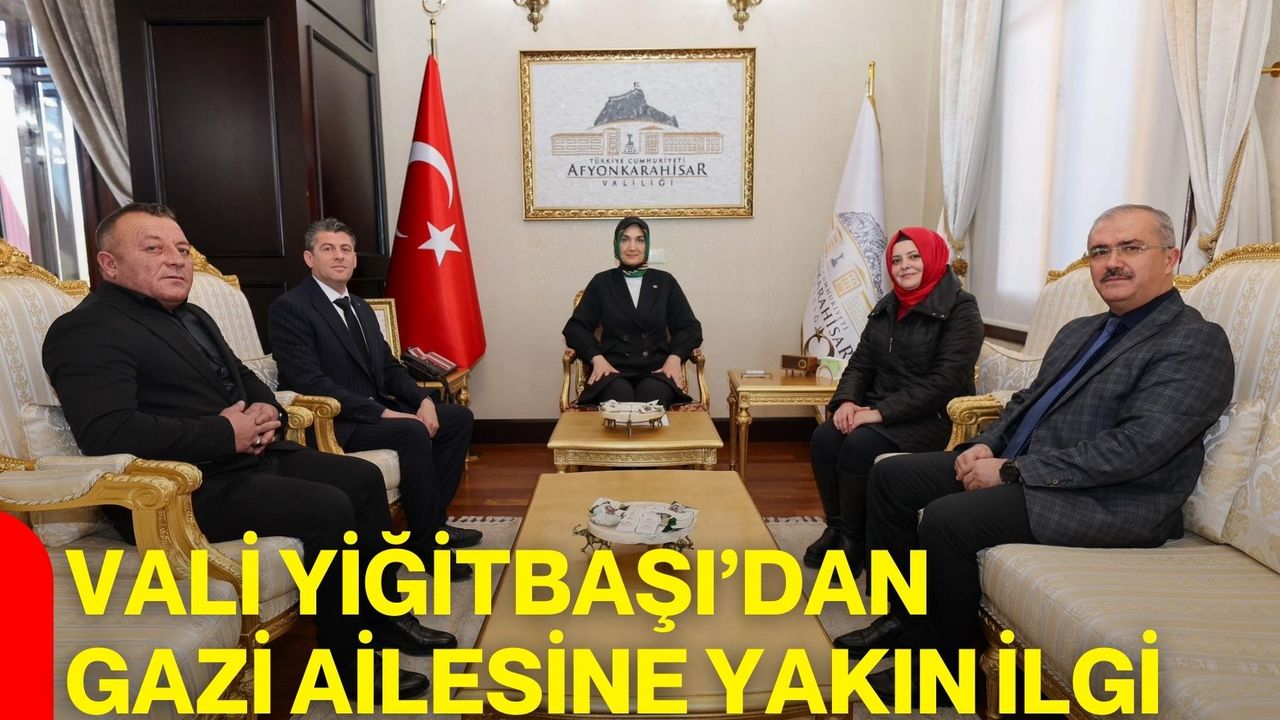 Afyonkarahisar Valisi Doç. Dr. Kübra Güran Yiğitbaşı, Kıbrıs Gazisi Osman Şahintepe’nin oğlu Barış Şahintepe ve eşi Hatice Şahintepe’yi makamında misafir etti. Ziyarette, Afyonkarahisar Aile ve Sosyal Hizmetler İl Müdürü Bilal Erdoğan da hazır bulundu.