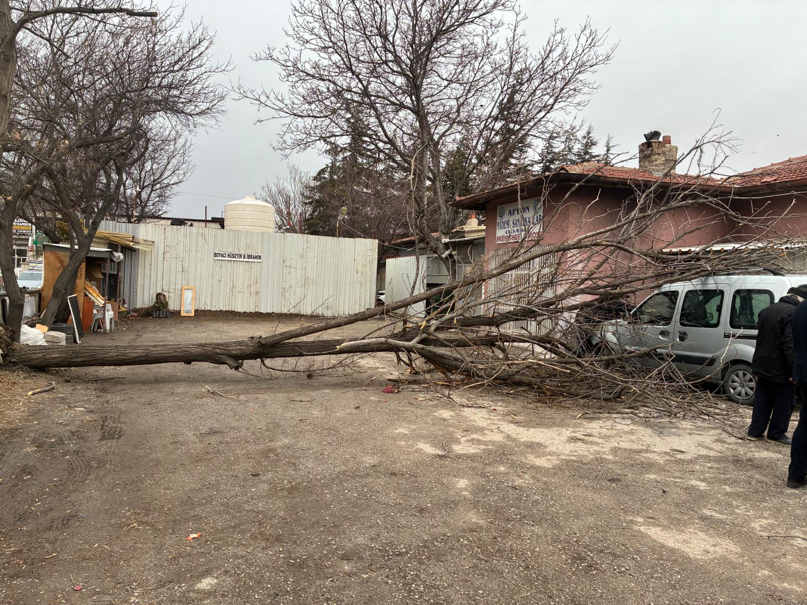 Afyonkarahisar’da bugün etkili olan lodos fırtınası kentte hayatı olumsuz etkiledi. Güney ve güneybatı yönlerinden esen kuvvetli rüzgar nedeniyle bazı bölgelerde ağaçlar devrildi, araçlar zarar gördü ve binaların çatılarındaki kiremitler yollara savruldu.