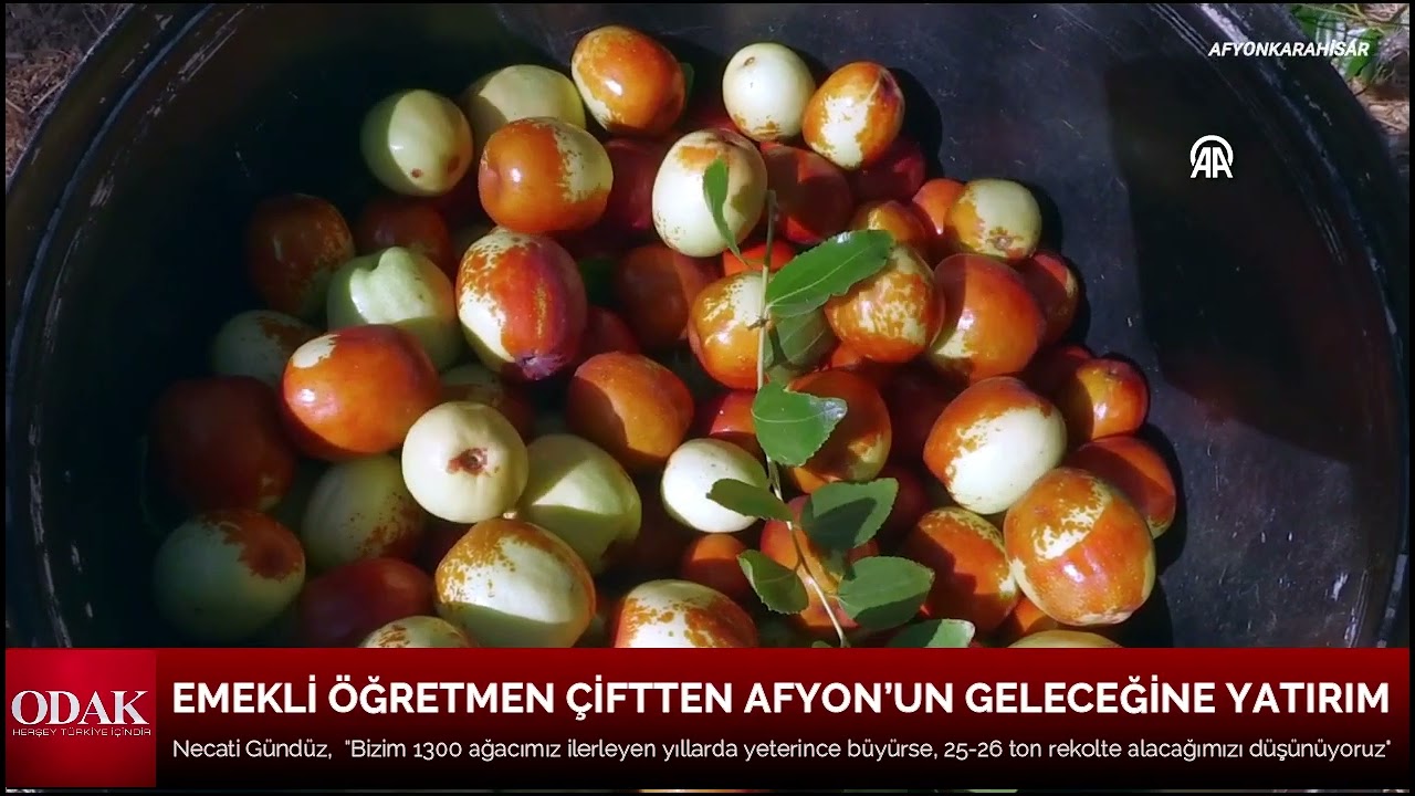 Afyonkarahisar'da emekli öğretmen Necati ile Şükran Gündüz çifti, 10 yıl önce kurduğu hünnap bahçesiyle üretime katkı sunuyor.