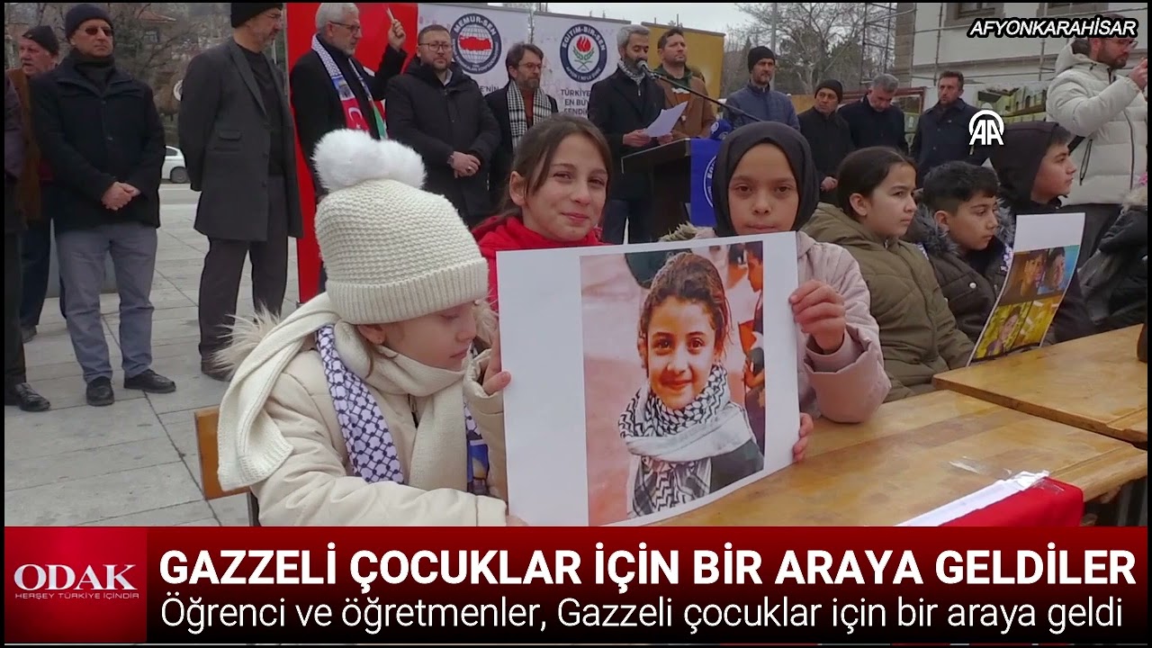 Afyonkarahisar'da "Öğrenci ve Öğretmenler Gazzeli Çocuklar İçin Toplanıyor" etkinliği düzenlendi.Kent meydanında bir araya gelen öğrenciler, İsrail'in saldırılarında hayatını kaybeden çocukların fotoğraflarını sergiledi.