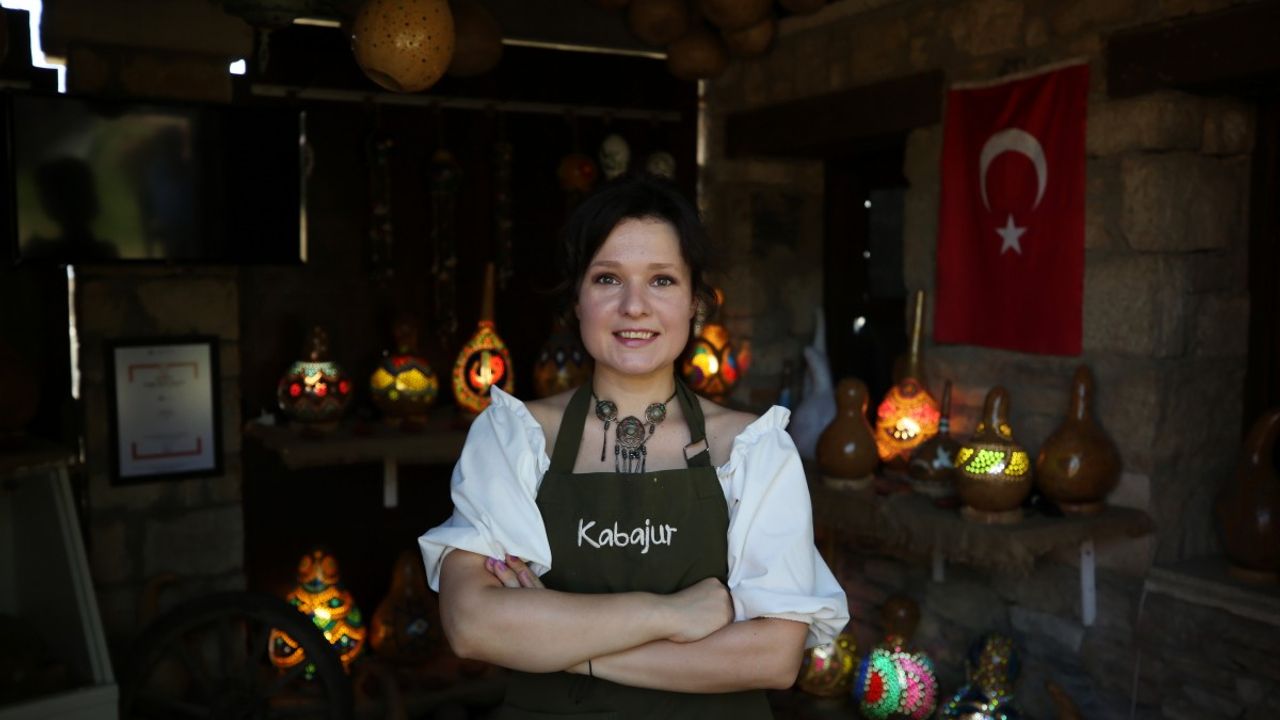 Katerina Songör, AA muhabirine, su kabağından sanat eseri elde etmenin büyük bir zevk olduğunu söyledi.