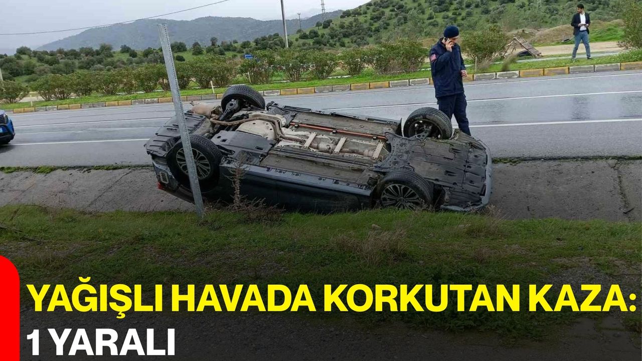 Aydın-Muğla Karayolu üzerinde yağış sebebiyle kayganlaşan yolda kontrolden çıkan otomobil ters döndü, kazada 1 kişi yaralandı.