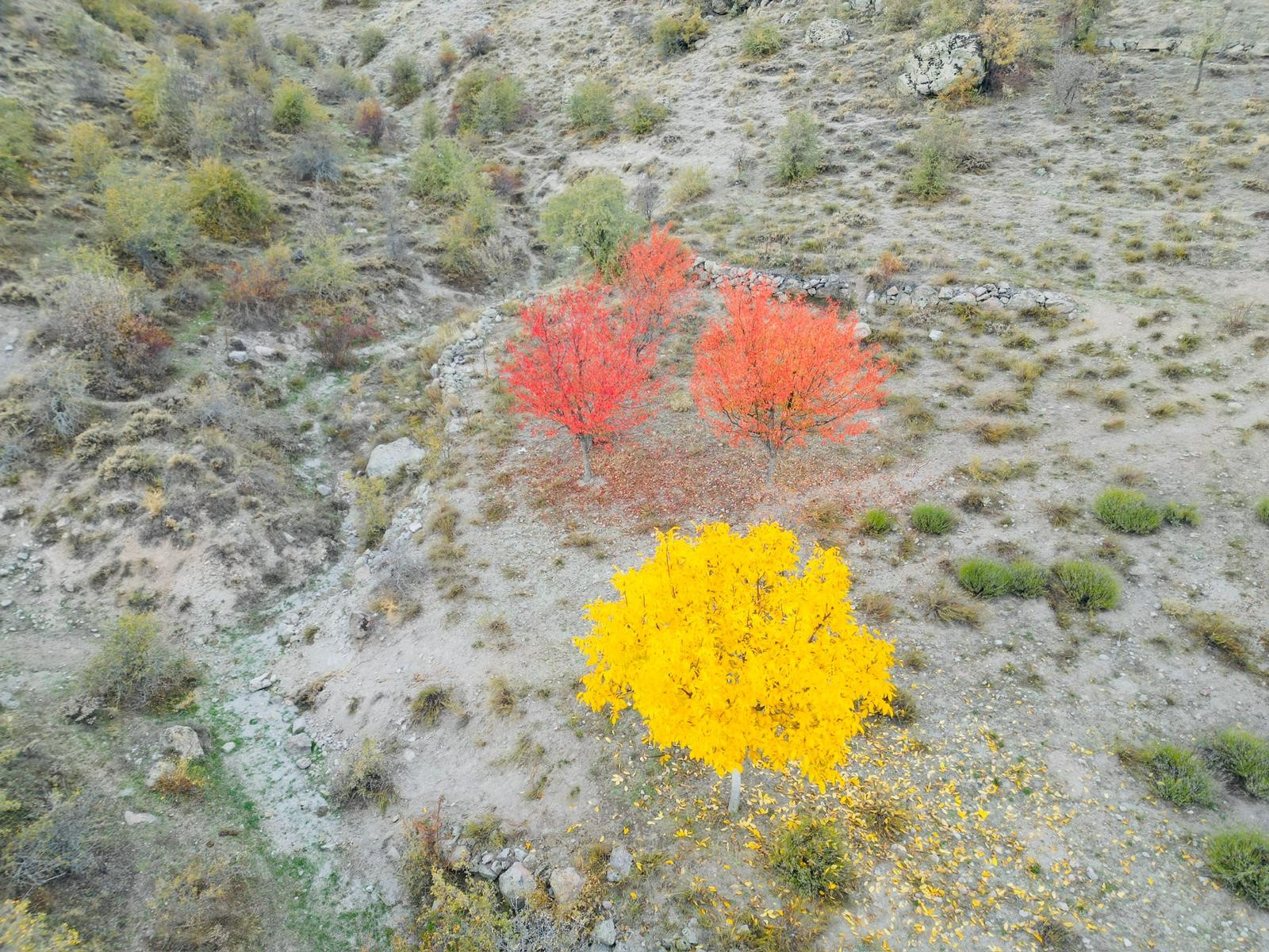 Afyonkarahisar'da sonbahar mevsiminin tüm güzellikleri yaşanmaya devam ederken, Büyükkalecik bölgesinde çekilen bir görüntü ise görenleri adeta mest etti. Renklerin cümbüşünün yaşandığı görüntülerde ortaya çıkan manzara ise adeta yağlı boya tablolarını taş çıkarttı.