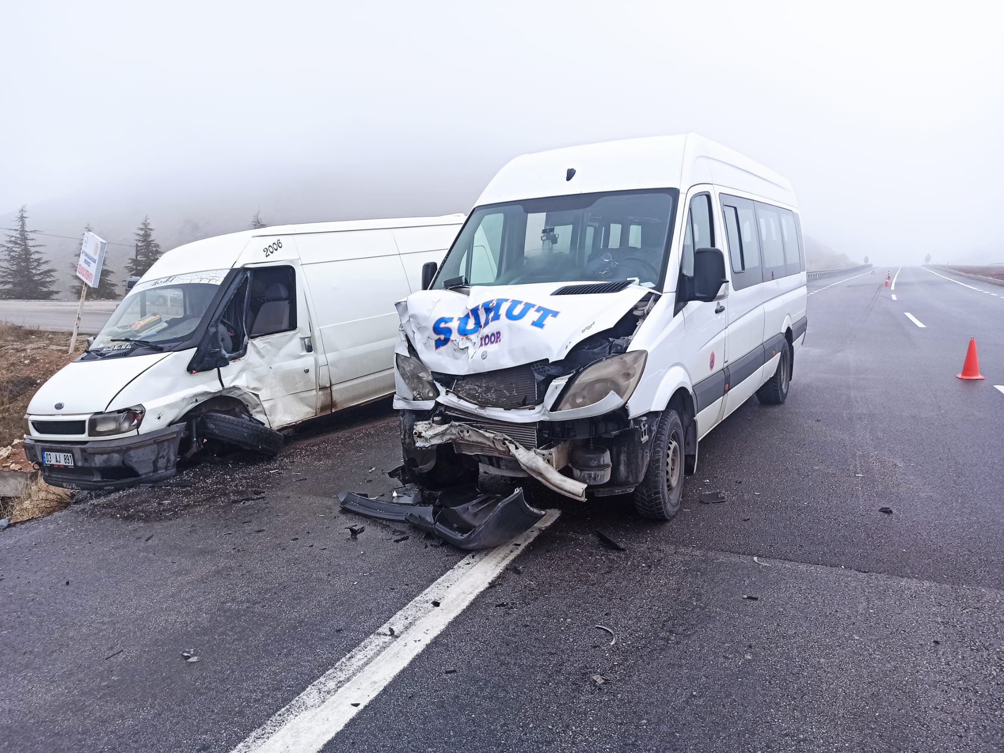 M.K. (39) idaresindeki 03 SG 730 plakalı yolcu minibüsü, merkez Belkaracaören beldesi mevkisinde, M.İ.K'nin (55) kullandığı 03 AJ 891 plakalı kamyonetle çarpıştı.