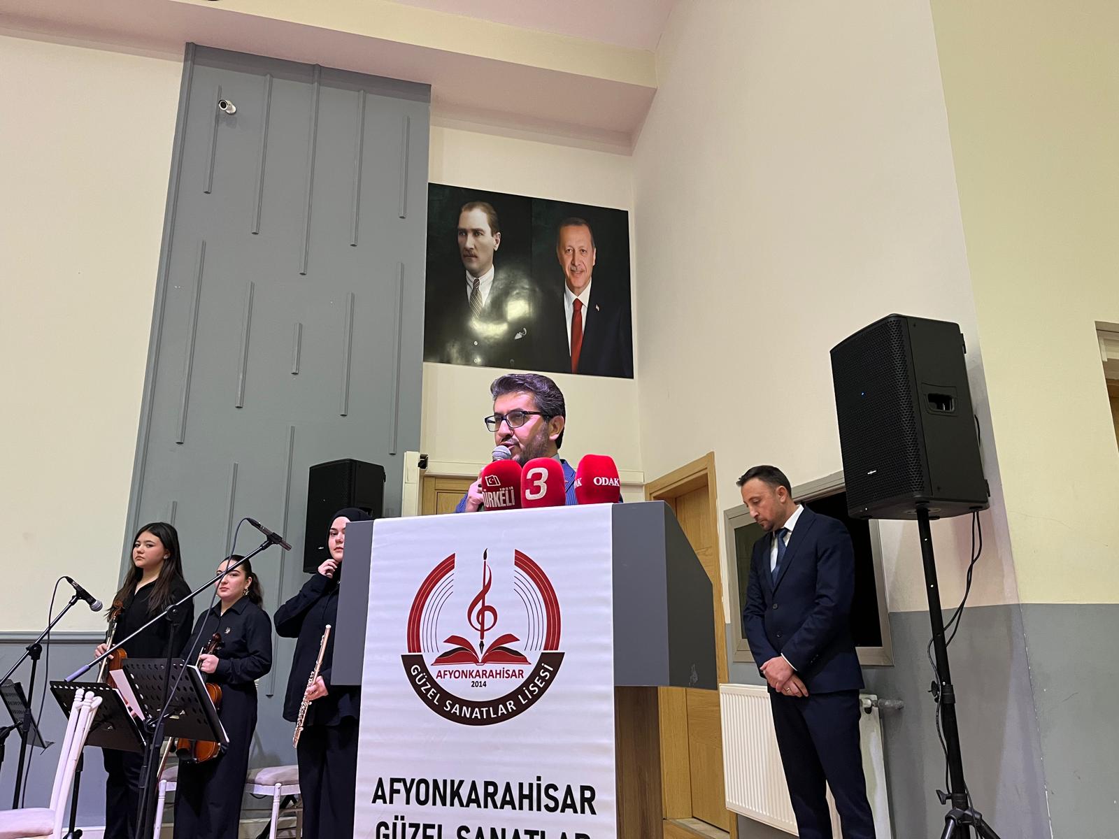 Programın açılışında konuşan Afyonkarahisar Güzel Sanatlar Lisesi Okul Müdürü Ali Turan, eğitimin yalnızca bilgi aktarmak olmadığını vurguladı. Turan, sanatın gençlerin kalbini, zihnini ve iradesini birlikte inşa ettiğini belirterek, sahnelenen eserin kültürel bilinç ve medeniyet tasavvurunun bir yansıması olduğunu ifade etti.