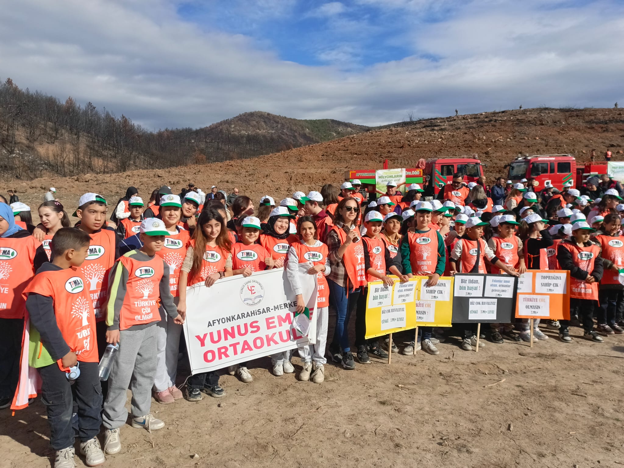 Cumhurbaşkanlığı himayelerinde yürütülen “Milli Ağaçlandırma ve Yeşil Vatan Seferberliği” kapsamında Yunus Emre Ortaokulu öğrencileri, öğretmenleriyle birlikte doğaya nefes olacak bir etkinlikte buluştu. Okuldan 45 öğrenci, 2 öğretmen ve 1 idarecinin katıldığı fidan dikim programı büyük bir heyecan ve duyarlılıkla gerçekleştirildi. Öğrenciler, diktikleri fidanlarla birlikte doğaya sahip çıkmanın önemini yaşayarak öğrendiler.