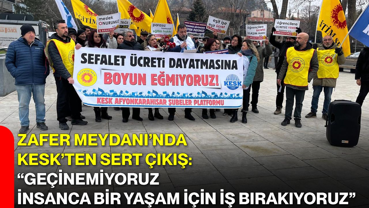 Kamu Emekçileri Sendikaları Konfederasyonu (KESK), Afyonkarahisar Zafer Meydanı’nda düzenlediği basın açıklamasıyla kamu emekçilerinin yaşadığı ekonomik sıkıntılara dikkat çekti. Eğitim Sen Afyonkarahisar Şube Başkanı Ender Karaaslan tarafından yapılan açıklamada, emekçilerin insanca bir yaşam için üretimden gelen güçlerini kullandıkları ve ülke genelinde iş bırakma eylemi gerçekleştirdikleri ifade edildi.